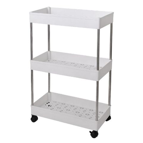 F1-465バスルームキッチン取り外し可能なコーナーシェルフホイール付き3層ローリングトロリーラックプラスチック収納オーガナイザーラック